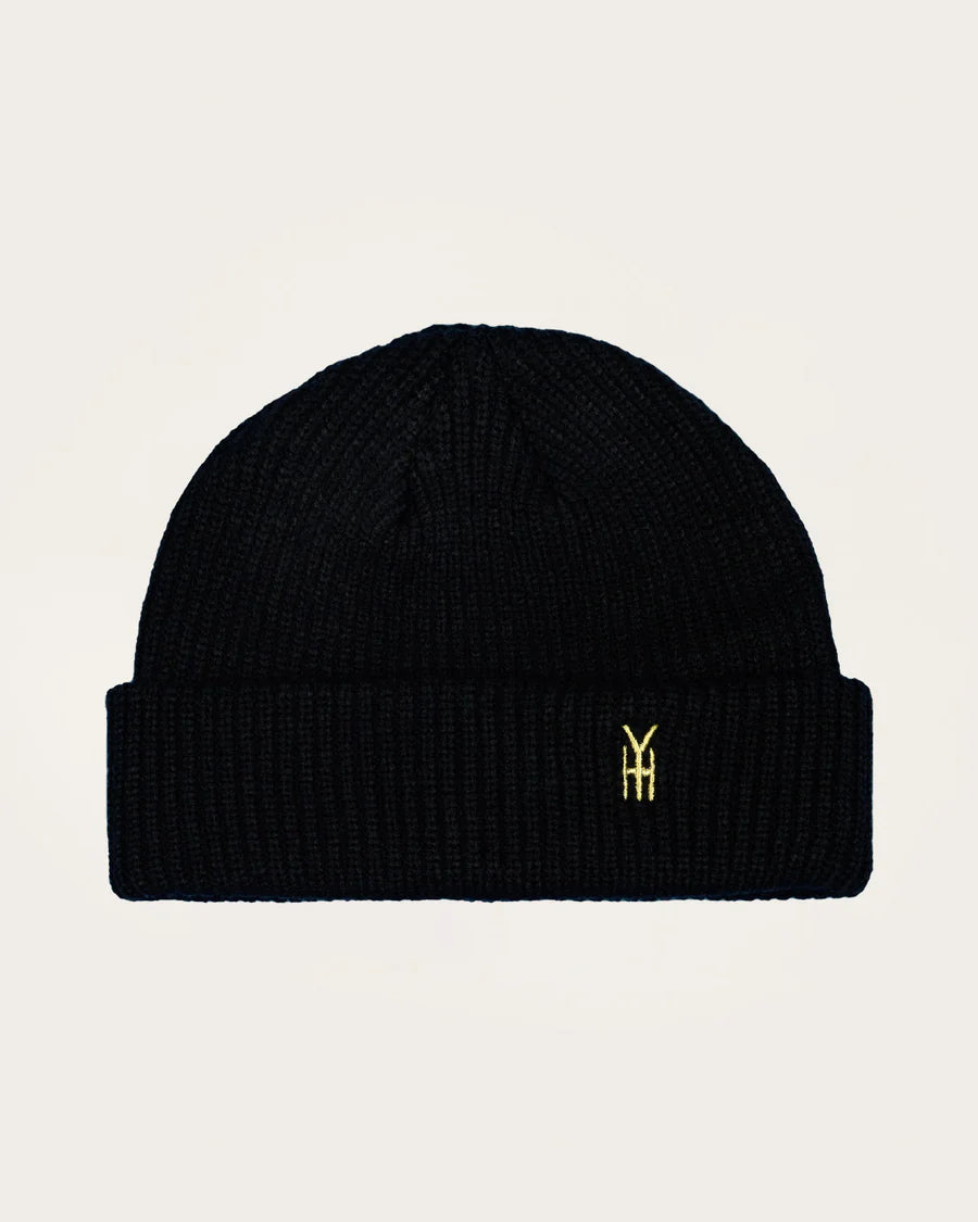 Gorro HIY bordado en negro. Con nuestro logo HIY bordado en la parte delantera. Gorro de pescador ajustado.