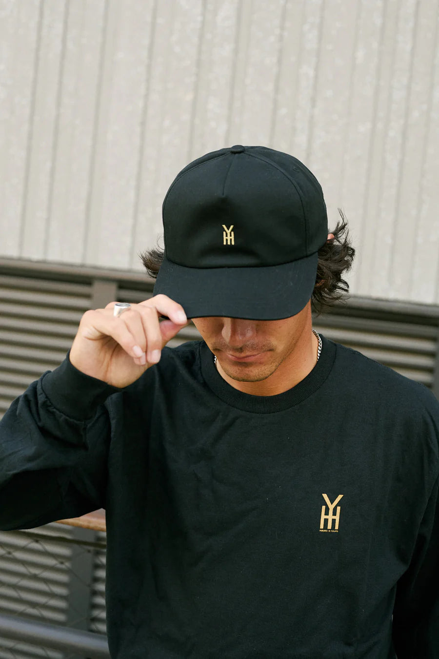 Gorra negra con cierre a presión HIY. Con nuestro logo HIY bordado en la parte delantera